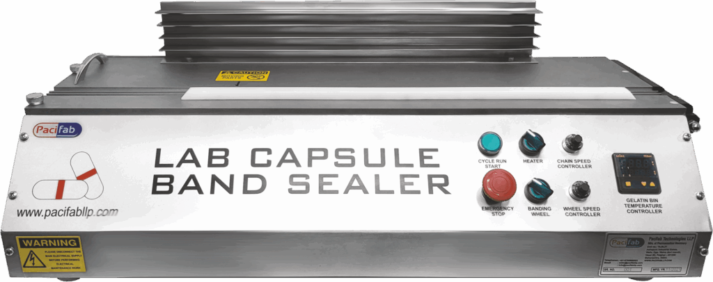 PACIFAB’s Lab Capsule Band Sealer is designed for sealing two-piece hard capsules filled with liquids, pastes, or combinations of pellets and tablets. Ideal for R&D and small-scale production, it ensures leak-proof encapsulation, tamper evidence, and oxidation protection. Compact and easy to clean, it features quick sealing and complies with GMP standards, enhancing precision and efficiency in laboratory settings.